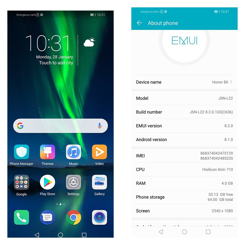 • OS: EMUI 8.2 (Base on Android 8.1)