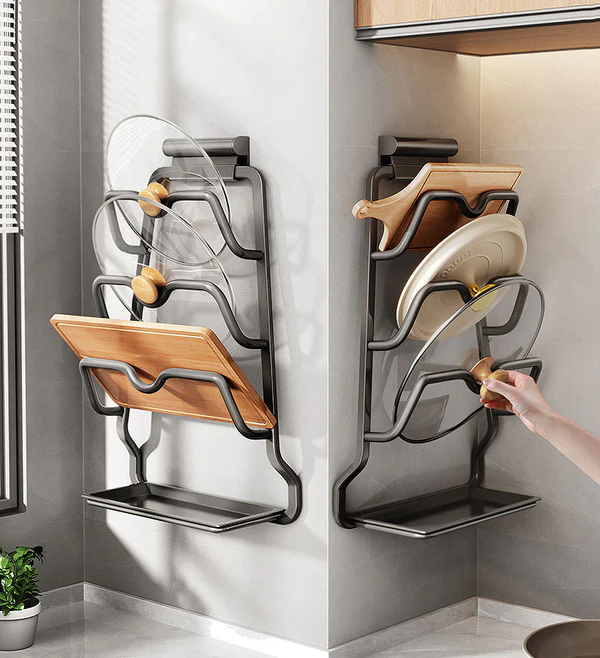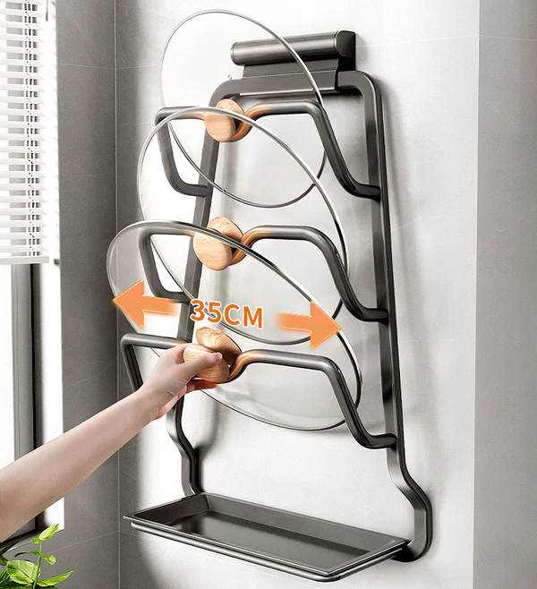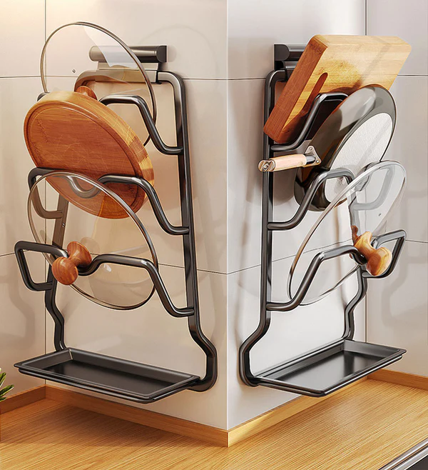 • With Drip Tray: With a drip tray at the bottom, a lid rack for pot lids can accommodate oil, soup, or water stains dripping from the lid.