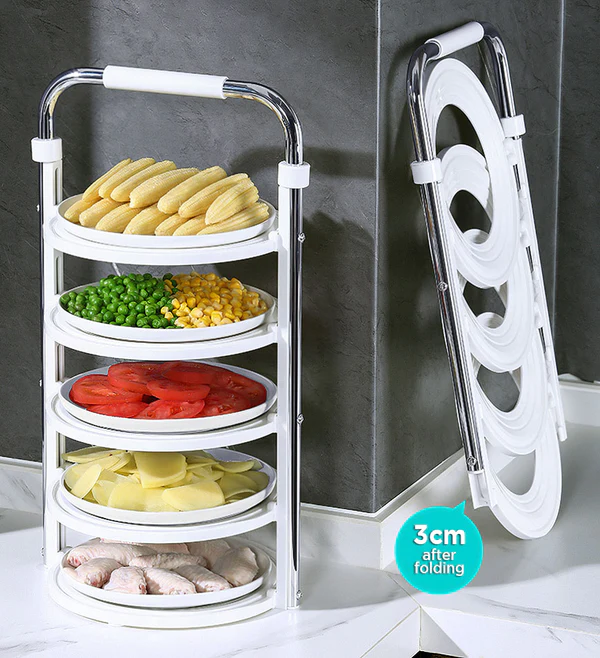 - Space saving & widely used: This 5-tier fruit and vegetable rack measures 52*23*28cm, can be placed with fruits, vegetables, sugars, snacks and small gadgets as fruit holder. Beautifully designed to serve multi-purpose for any dinner table, weddings, birthday parties, buffet treats, food display tables, baby shower, afternoon tea.
