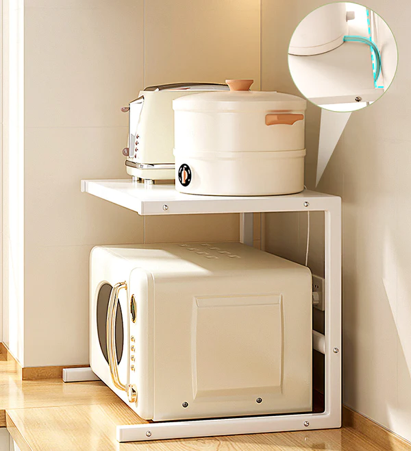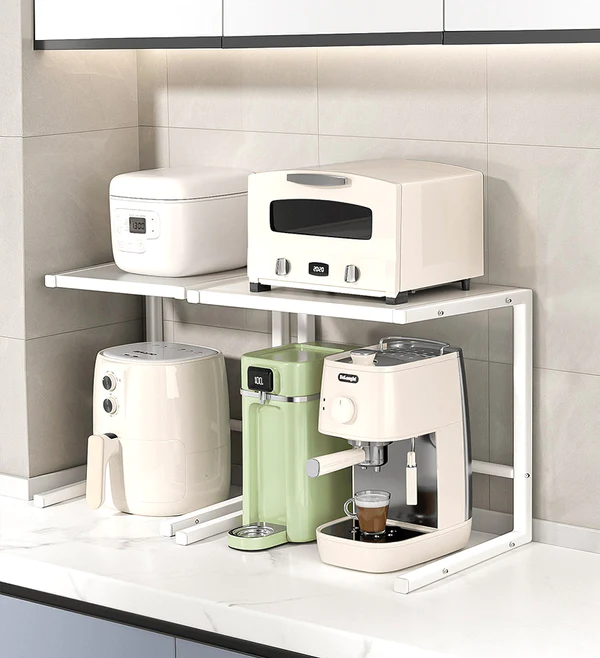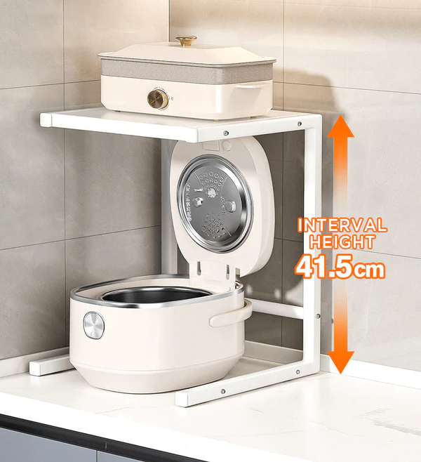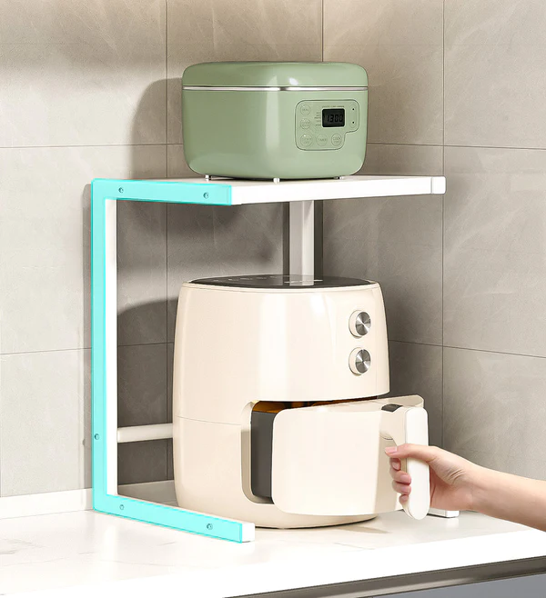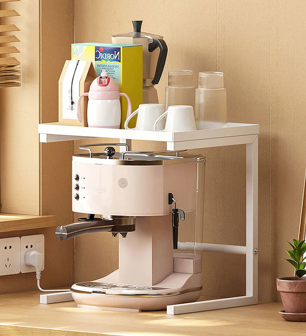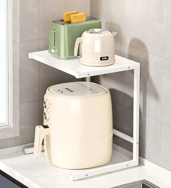• Multifunctional Storage Shelf: This Countertop Shelf has two layers of storage space, which can be a great storage shelf for a coffee maker, air fryer, small rice cooker, blender and other small appliances, Still you can store your spices, teacups, tableware, cosmetics, small plants, office accessories, etc.