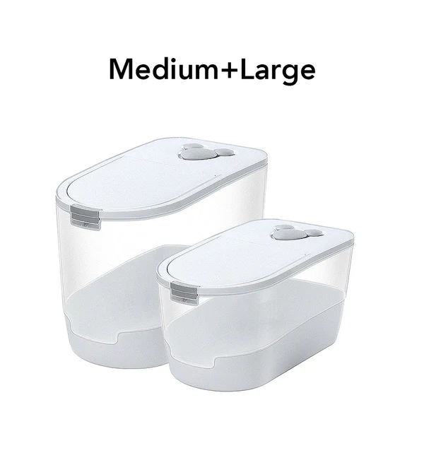 - Good Airtightness: The joints of the lid are sealed with silicone strips to form a good airtightness to keep out moisture and pests which keeps the food fresh and dry for a long time. There is a little moisture-proof box at the top of the lid, you can also put it into something to keep out moisture. This is the ideal solution for storing dog or cat food, other pet food, and more.