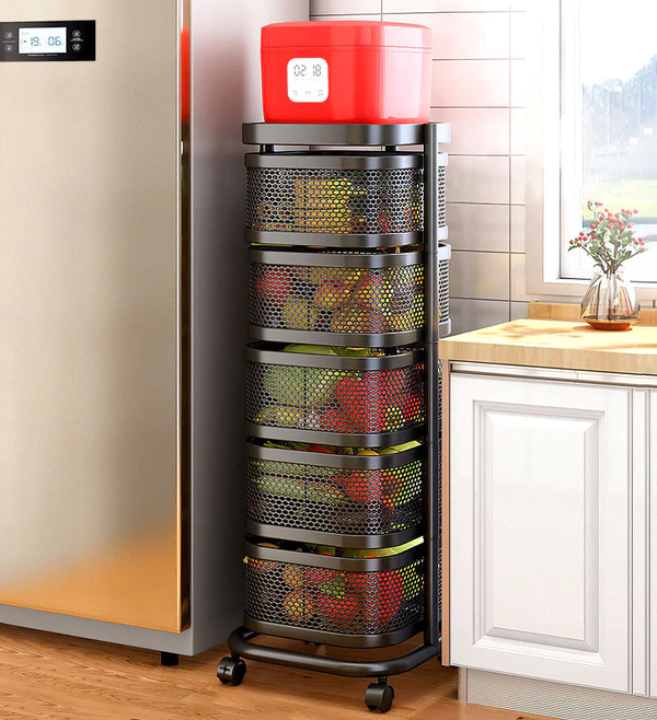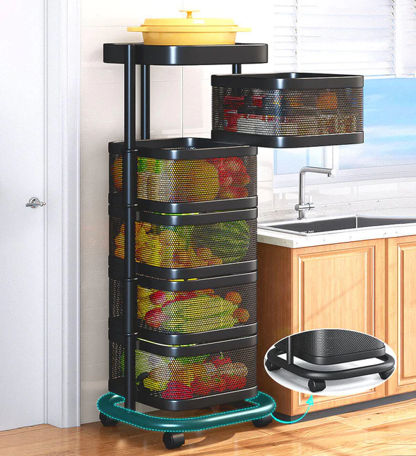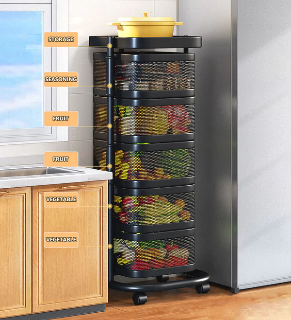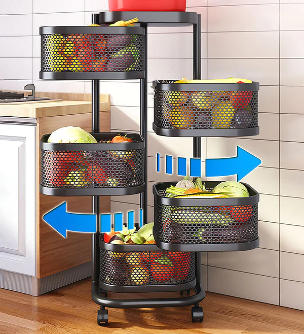 - Five-Tier Design & Sorting Storage: The 5 Tier storage basket can help you store vegetables, fruits, snacks, toiletries, etc. It is not easy to mix flavors between various fruits and vegetables. Fully enveloping the guardrail and wire mesh ventilation basket makes fruits and vegetables not easy to rot.