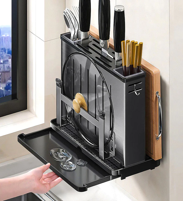 - Fully Detachable Structure: The bottom and the caddy can be disassembled for cleaning. The drain tray of the universal knife block without knives is a snap design, easy to remove and install. Non-slip base with 4 rubber pads, which can avoid tipping over when you take the brush out from the kitchen knife holder and also can avoid scratching your pretty countertop.
