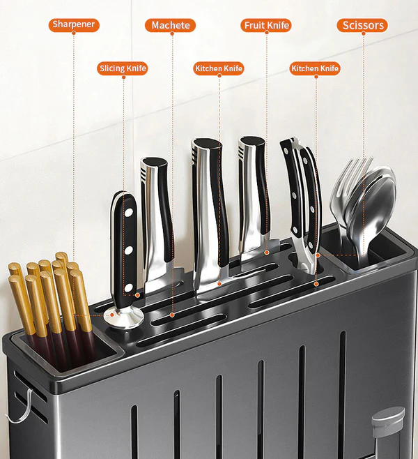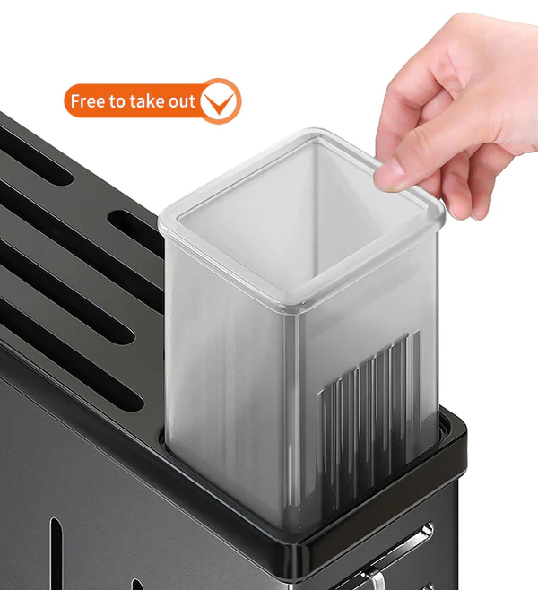 - Unique Drain Holes Design: Still worrying about the water in the bottom of the universal knife block without knives? Joybos Kitchen Utensil Holder has convenient drainage holes with a detachable tray, the water won’t drip to your countertop and can be dumped directly from the bottom, no need to take out the knives or turn it upside-down. The vents at the bottom make the tableware dry quickly and keep it clean.