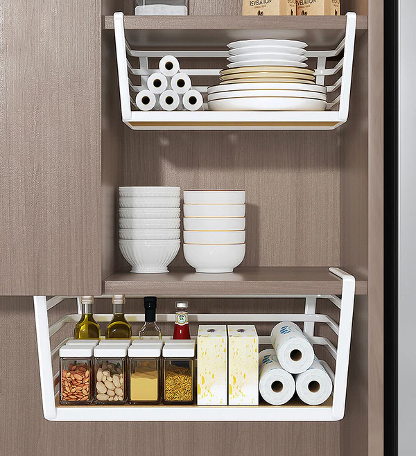 - UNDER-SHELF STORAGE: This convenient basket storage drawer slides over pantry, cabinet and closet shelves to create extra storage; Instantly add storage to any existing shelving and take advantage of unused space; The perfect storage and organizing solution for modern kitchens and pantries.