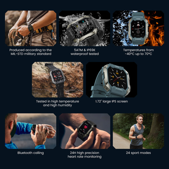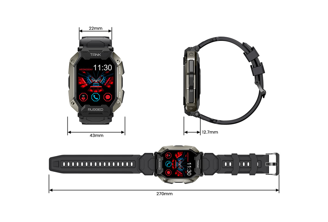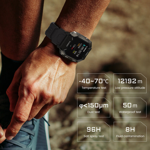 KOSPET TANK M1 PRO, another masterpiece from the Rugged Series, is built for outdoor adventures of all kinds. The smartwatch keeps track of your physical conditions in real time regardless of the ever-changing environments out there.