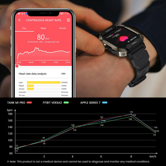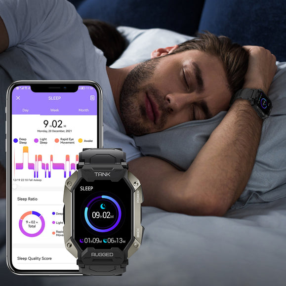 KOSPET TANK M1 PRO serves to provide a clear picture of your health by monitoring your heart rate (with high heart rate alert), blood pressure, blood oxygen, and sleep throughout the day.