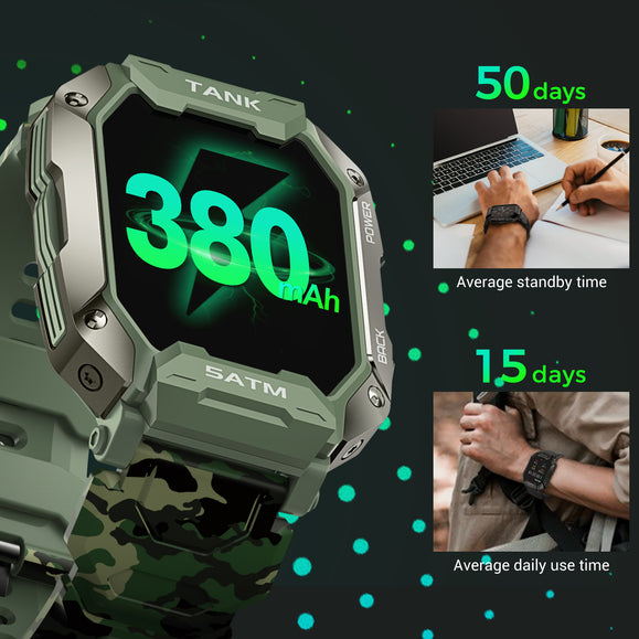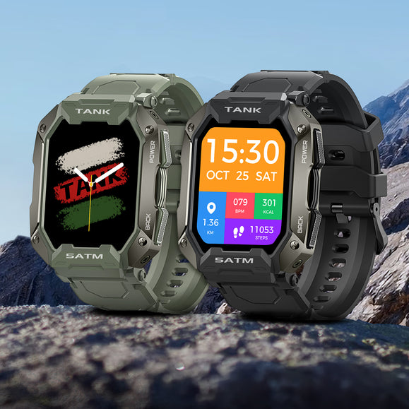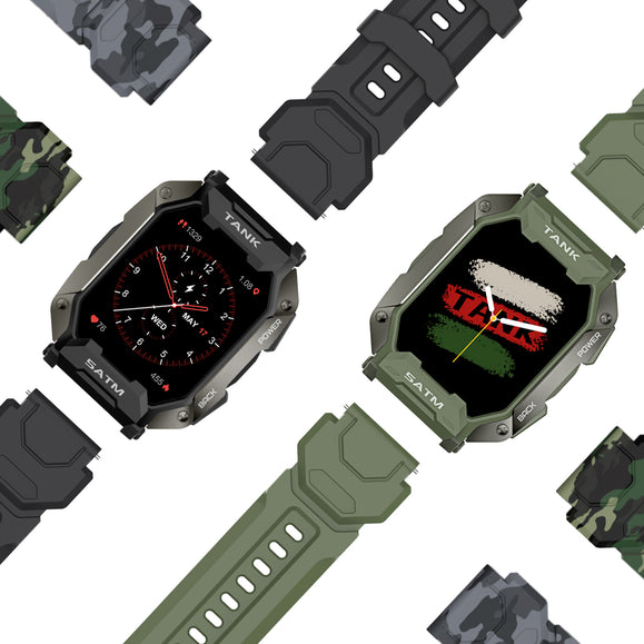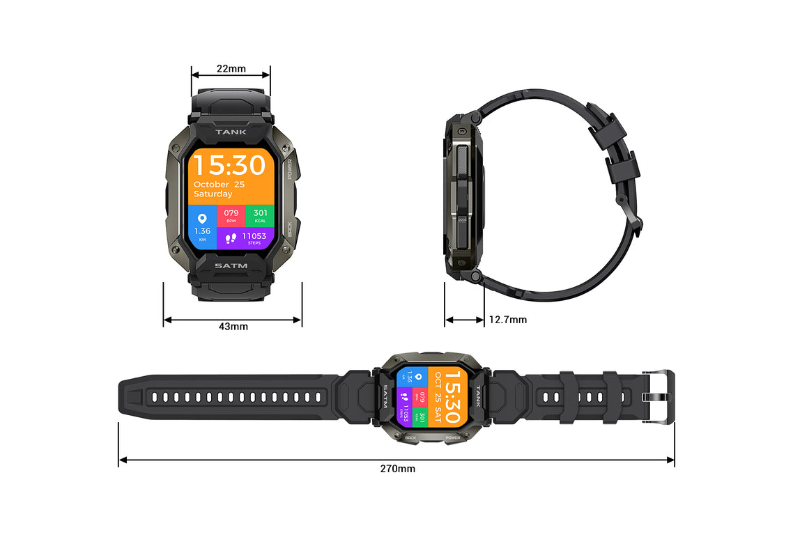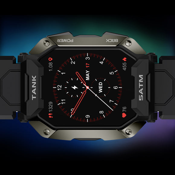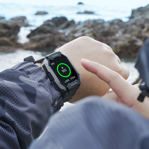 With a 1.72-inch, high-brightness IPS display with 280 x 320 pixels resolution, KOSPET TANK M1 never fails to delver an excellent visual experience. The watch case adopting the metal spraying technology features a textured touch. Moreover, the smartwatch weighing only 65g comes with soft and breathable straps, making it easy and comfortable to wear.
