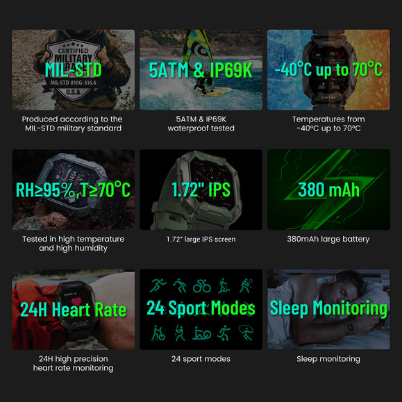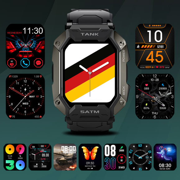 What further complement the 1.72-inch retina display of KOSPET TANK M1 are 10 watch faces specifically designed for the smartwatch, not to mention more choices available on its compatible APP Da Fit free of charge.
