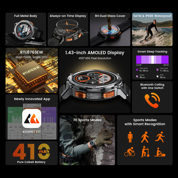Considering the fact that AMOLED displays can control how each pixel illuminates, it tends to be more energy-efficient than LCD displays. With always-on time display enabled by TANK T2, you can stay proactive and informed anytime.