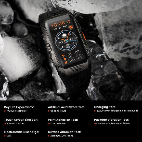 KOSPET TANK X1 was engineered with premium quality and spectacular performance. Having earned up to 15 U.S. MIL-STD-810H certifications, the smart band battles with you through scorching deserts, humid rainforests and freezing glaciers.