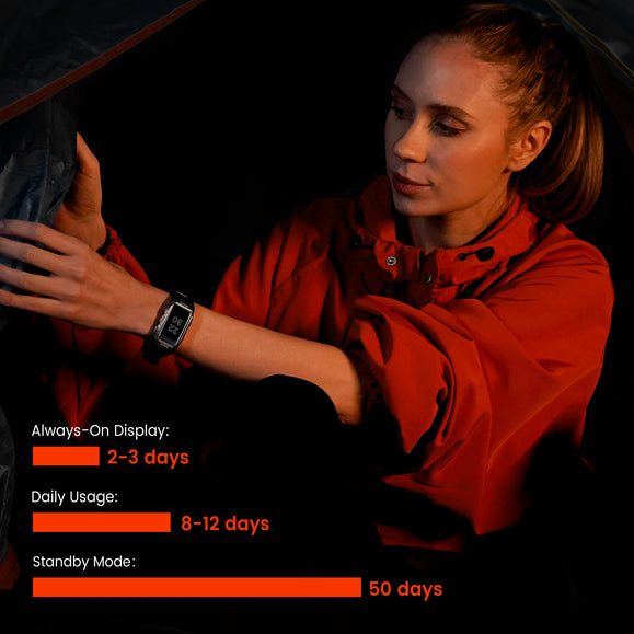 - 🏊♂️ 50+Days Extra Long Battery Life- Thanks to the 230mAh pure cobalt battery,a full charge on this activity tracker and smartwatches powers over 50 days in standby mode, 8-12 days for daily use, or 2-3 days for Always-On Display mode. So that you can get the most out of your every workout.