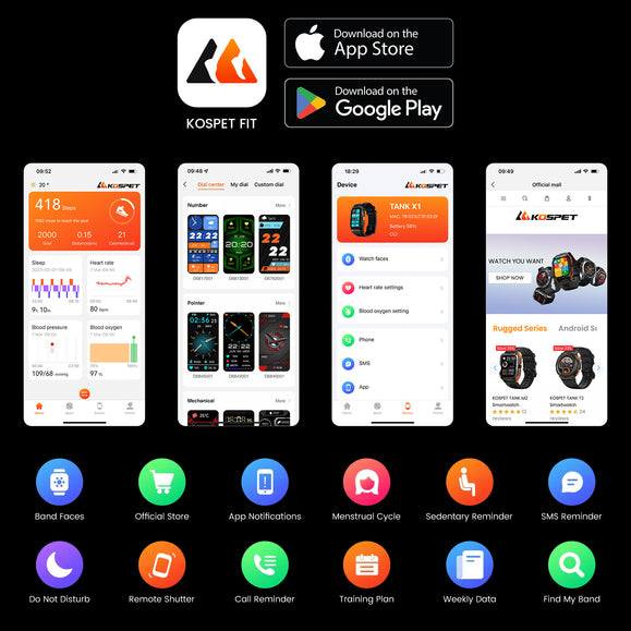 A profusion of practical programs and band faces are available on the free-to-download App KOSPET FIT via which you can also enter KOSPET official website, check your orders, learn about our new products there, and so forth.