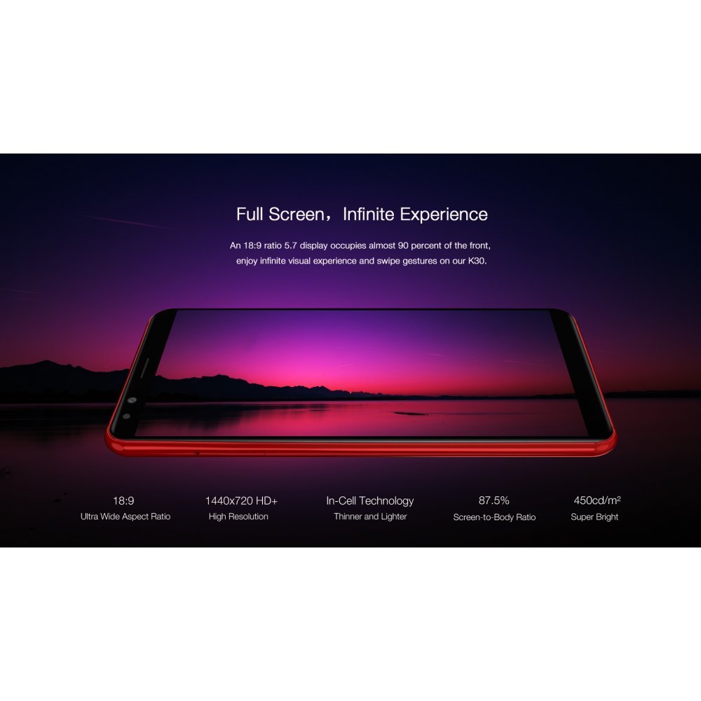 - An 18:9 ratio 5.7 display occupies almost 90 percent of the front, enjoy the infinite visual experience and swipe gestures on our K30.