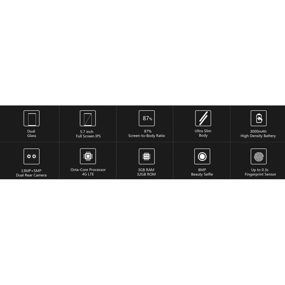 Dual Corning Gorilla Glass, 5.7 inch HD+ Full Screen, 18:9 Full HD Screen.