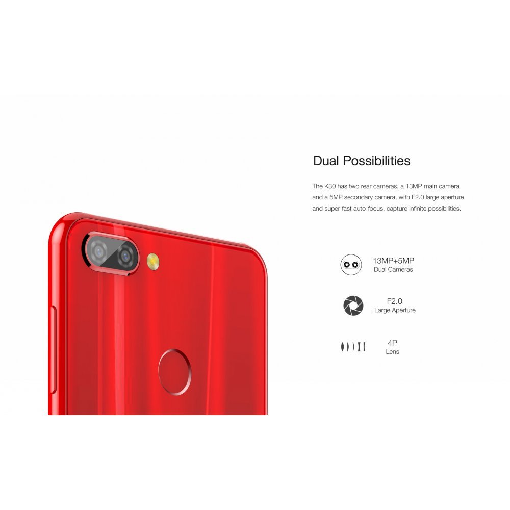 - The K30 has two rear cameras, a 13MP main camera and a 5MP secondary camera, with F2.0 large aperture and super fast autofocus, capture infinite possibilities.