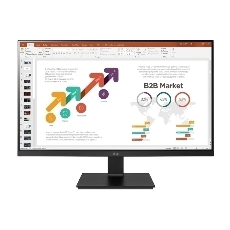 LG 24inch IPS FHD Business Monitor, 1920×1080, 5ms GTG, 75Hz, 1000:1, 16:9 Aspect, DP1.2, HDMI1.4, USB-C, USB3.0 Hub, Speaker, VESA, Tilt, Heigh/Adjust, Swivel, Pivot, Flicker-Free, Black Stabilizer, Colour Calibrated, 3-Side Narrow Bezel Design