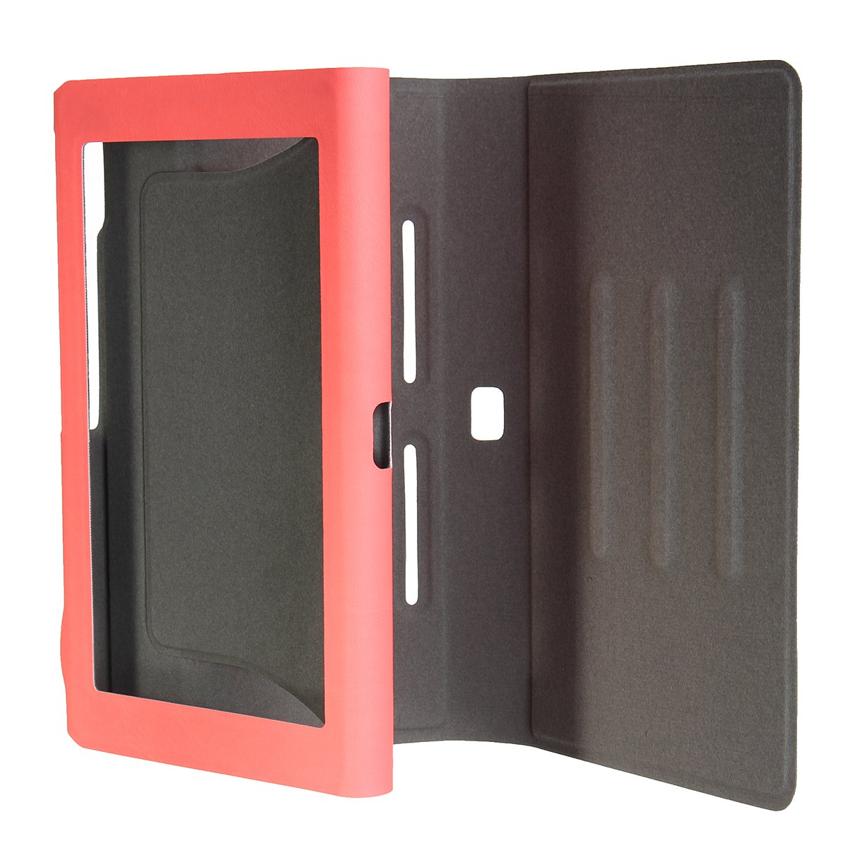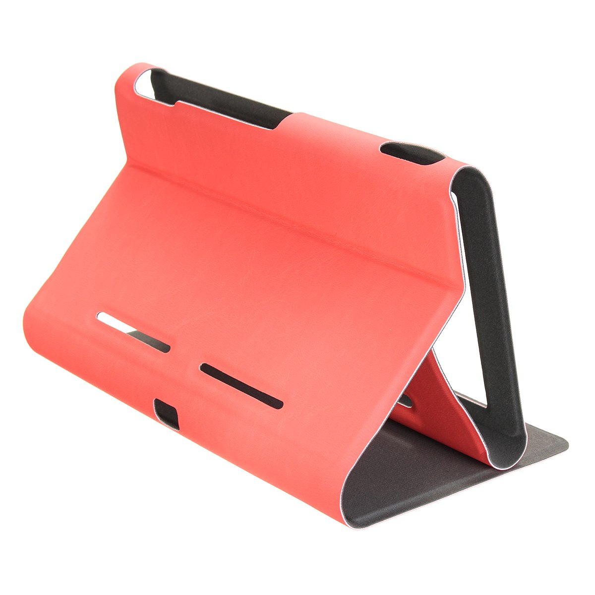 Magnetic closure front cover can be folded back into a stand for horizontal viewing