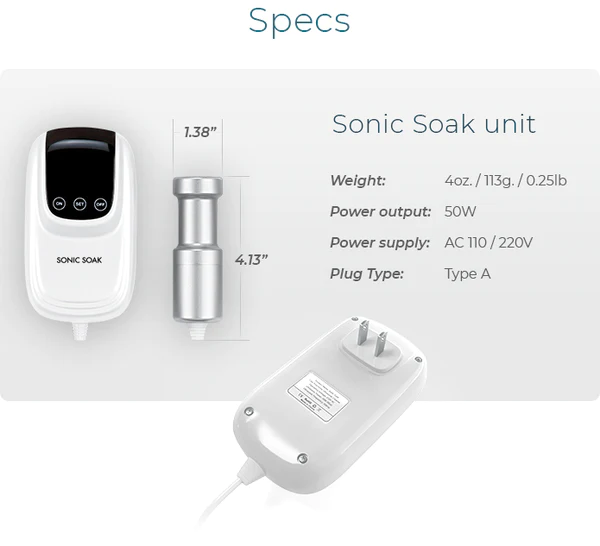 Finally, a device that has revolutionzied cleanliness and hygiene in our daily lives by using ultrasonic cleaning technology. Sonic Soak’s modulated ultrasonic waves travel through water to clean at a microscopic level.