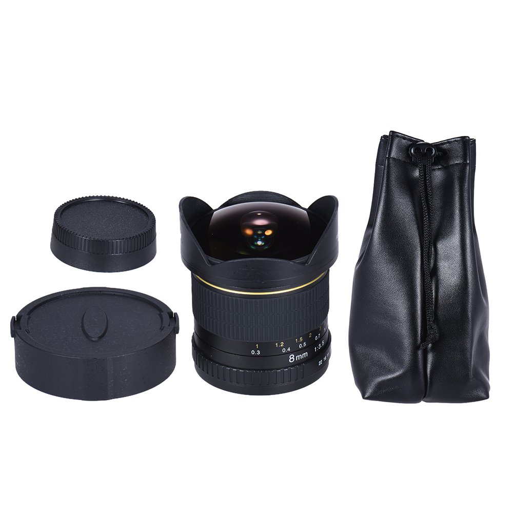 It is a manual digital fixed fisheye lens that offers an impressive 180 degrees field of view for stunningly vast image capture. The minimum shooting distance (just 12 inches) and large depth of field also provide amazing close-up shots.