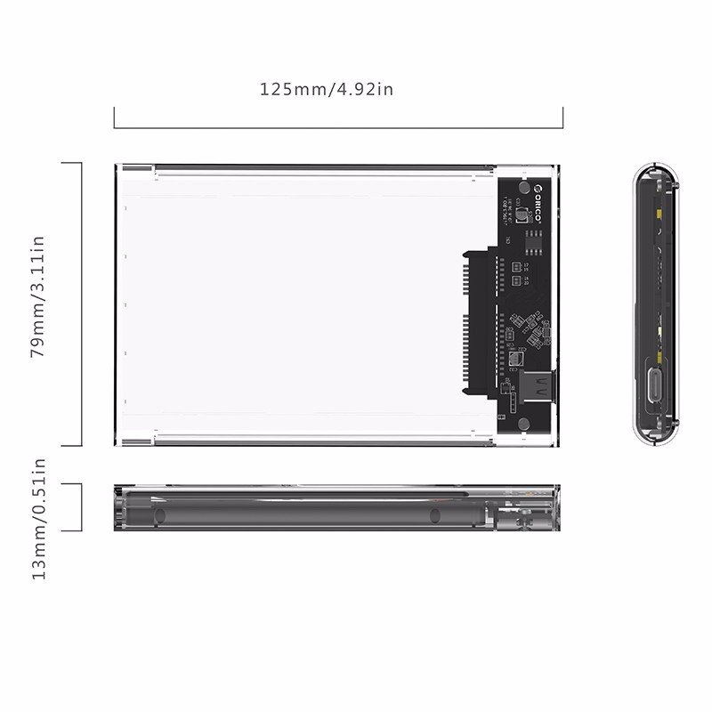 1 X ORICO 2.5 inch Type-C to SATA3 Transparent Hard Drive Enclosure External SSD HDD Case Support UASP