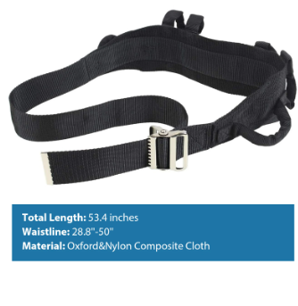 • QUICKLY ADJUST & REMOVE – Transfer belt is adjustable to accommodate waists up to 51”. The durable, metal buckle features a row of locking teeth that hold the belt in the desired position and also features a quick release latch, making it just as easy to remove when needed.