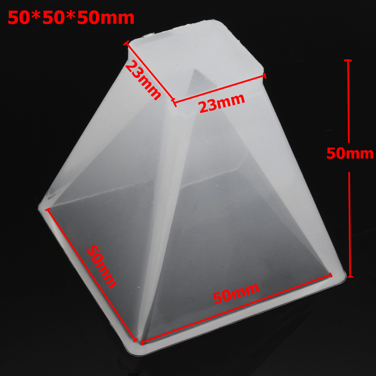 DescriptionMold Material:SiliconeFrame material:PlasticFinished Size:App 50*50*50mmShaped:PyramidFeature:1.Make of soft silicone,easy to use and clean.2. Non-toxic, dust resistant, durable, no permeate and easy to clean.Package include:1*  Silicone Mold(Not including the resin decoration)
