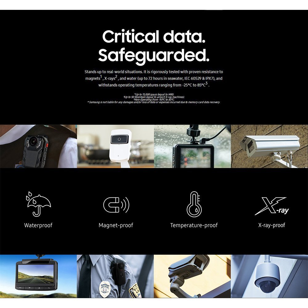 • Samsung PRO Endurance delivers industry-leading performance sustainable through extreme conditions.
