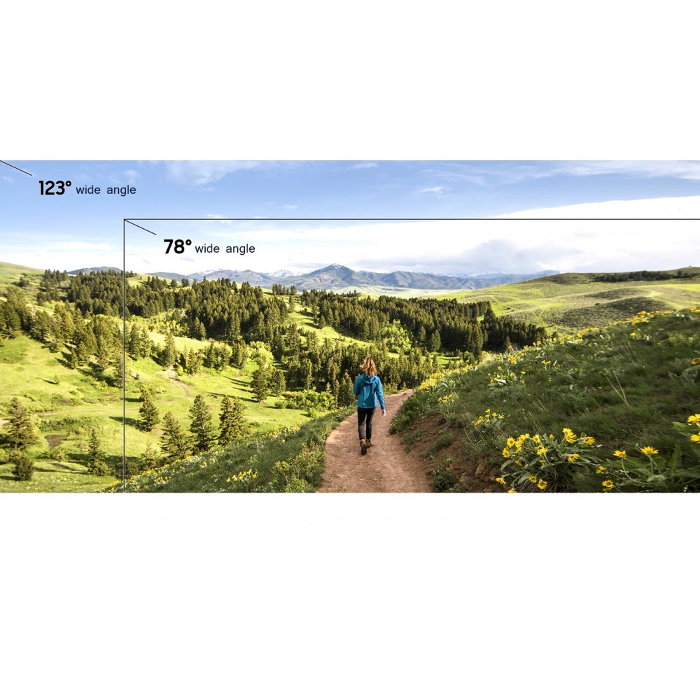 –Using the 123 degree ultra-wide angle camera, your shots can be even wider for a more dramatic point of view and sense of space, perfect for landscapes, architecture, group shots, and other types of photography, all in a snap.