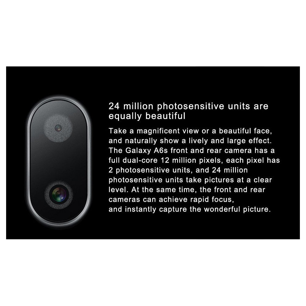 –Take a magnificent view or a beautiful face and naturally show a lively and large effect The Galaxy A6s front and rear camera has a full dual-core 12 million pixels , each pixel has 2 photo sensitive units , and 24 million photosensitive units take pictures at a clearlevel . At the same time . the front and rearcameras can achieve rapid focus and instantly capture the wonderful picture.