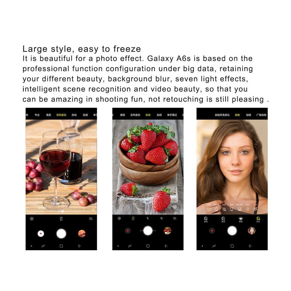 –Large style, easy to freeze, It is beautiful for a photo effect. Galaxy A6s is based on the professional function configuration under big data, retaining your different beauty, background blur, seven light effects,ntelligent scene recognition and video beauty, so that youcan be amazing in shooting fun, not retouching is still pleasing.