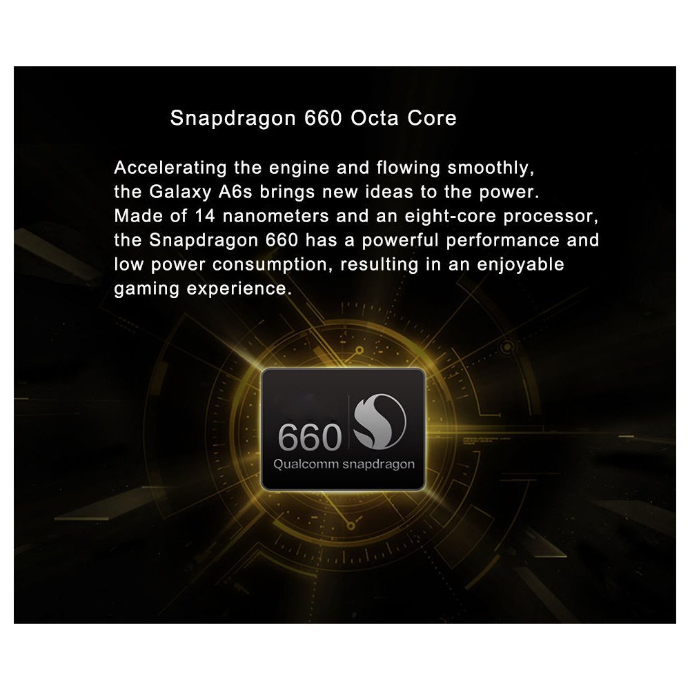 –Accelerating the engine and flowing smoothly, the Galaxy A6s brings new ideas to the power Made of 14 nano meters and an eight-core processor.the Snapdragon 660 has a powerful performance anlow power consumption, resulting in an enjoyable gaming experience.