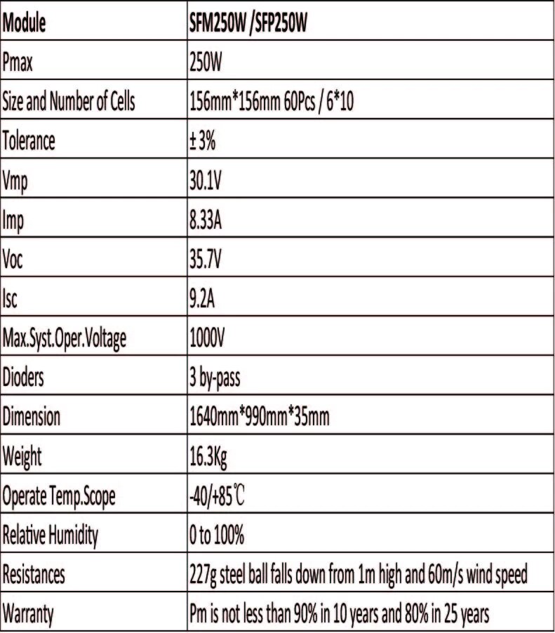 | Size and Number of Cells:156mm*156mm 60Pcs / 6*10 |