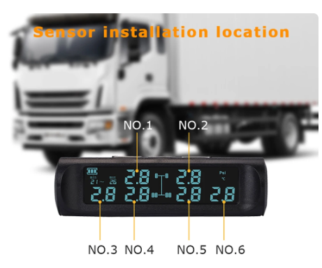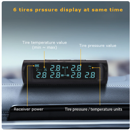 Solar Truck TPMS – Tire Pressure Monitoring System with 6 External Sensors and LCD Display