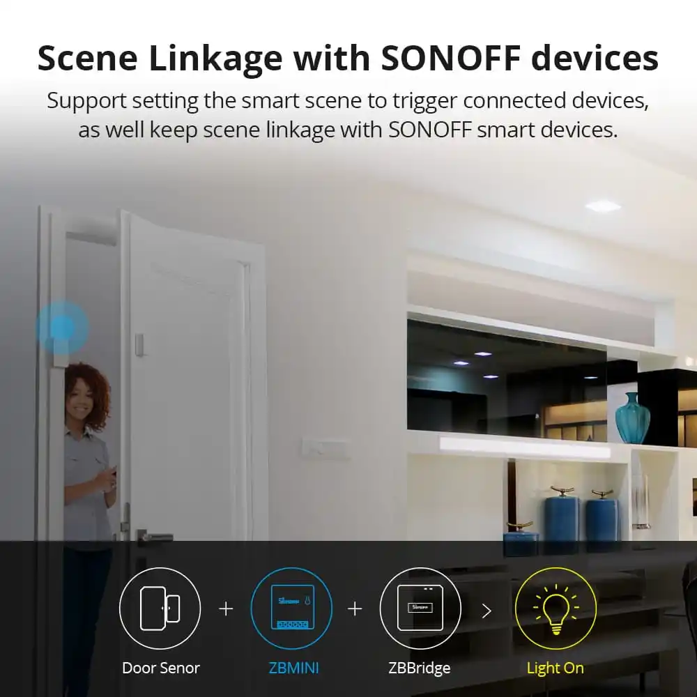 Support setting the smart scene to trigger connected devices, as well keep scene linkage with SONOFF smart devices.