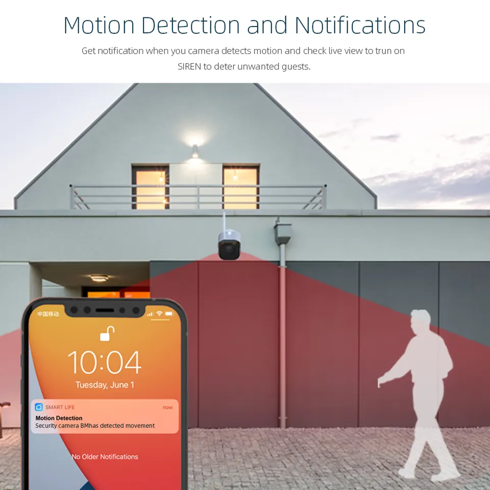 - [Motion Detection and Two-way audio ]Intelligent Auto motion detection, Two-way voice built-in mic and speaker. App alerts with