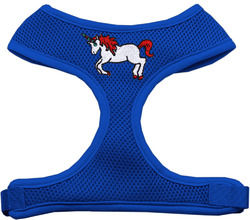 Unicorn Embroidered Soft Mesh Pet Harness Blue Medium