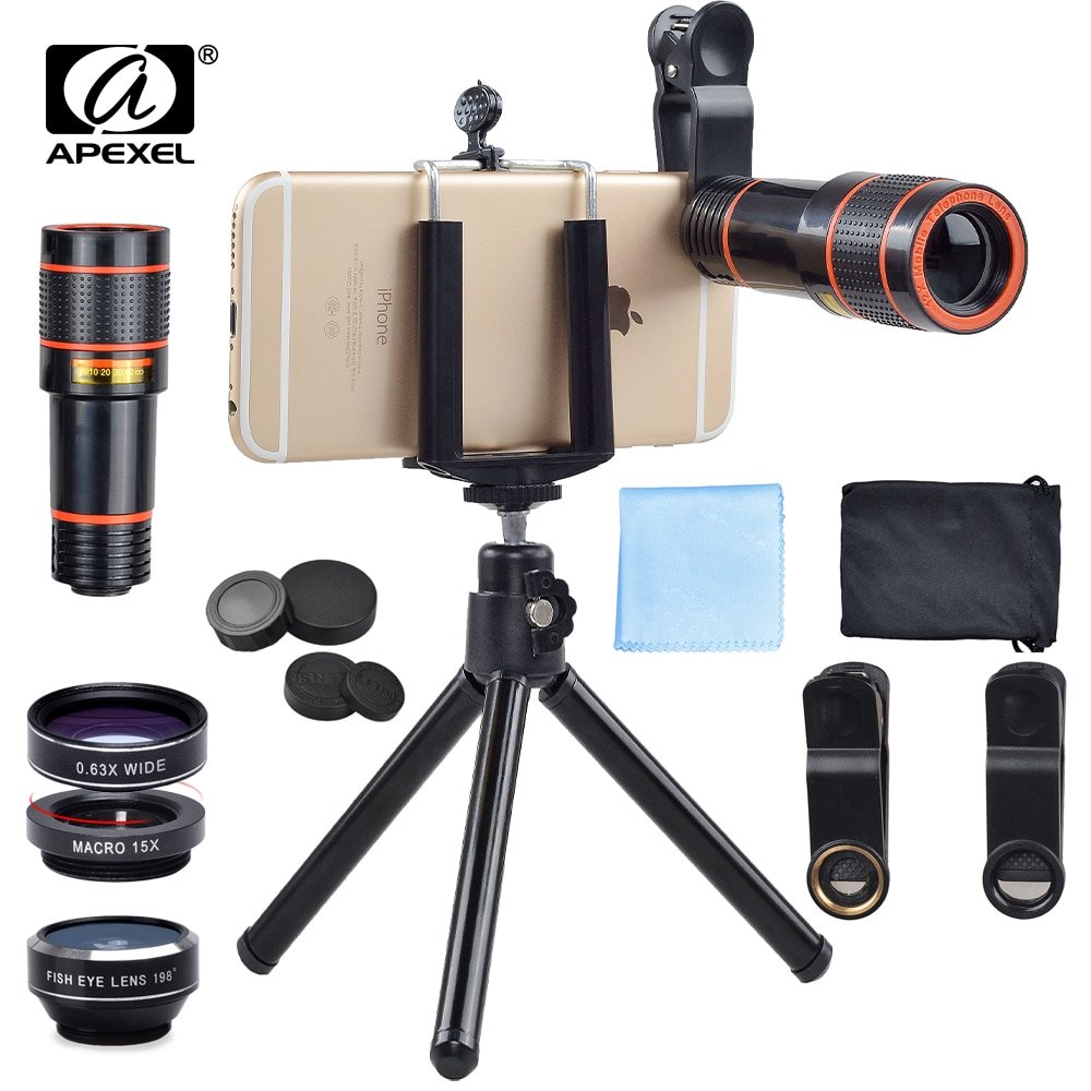 Universal 6 in 1 tripod 12X Zoom Telescope Fisheye Wide Angel Macro Lens