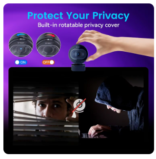 Comes with a built-in gear-driven privacy cover. Simply scroll the gear on top of the camera to shield the lens when necessary to protect your privacy