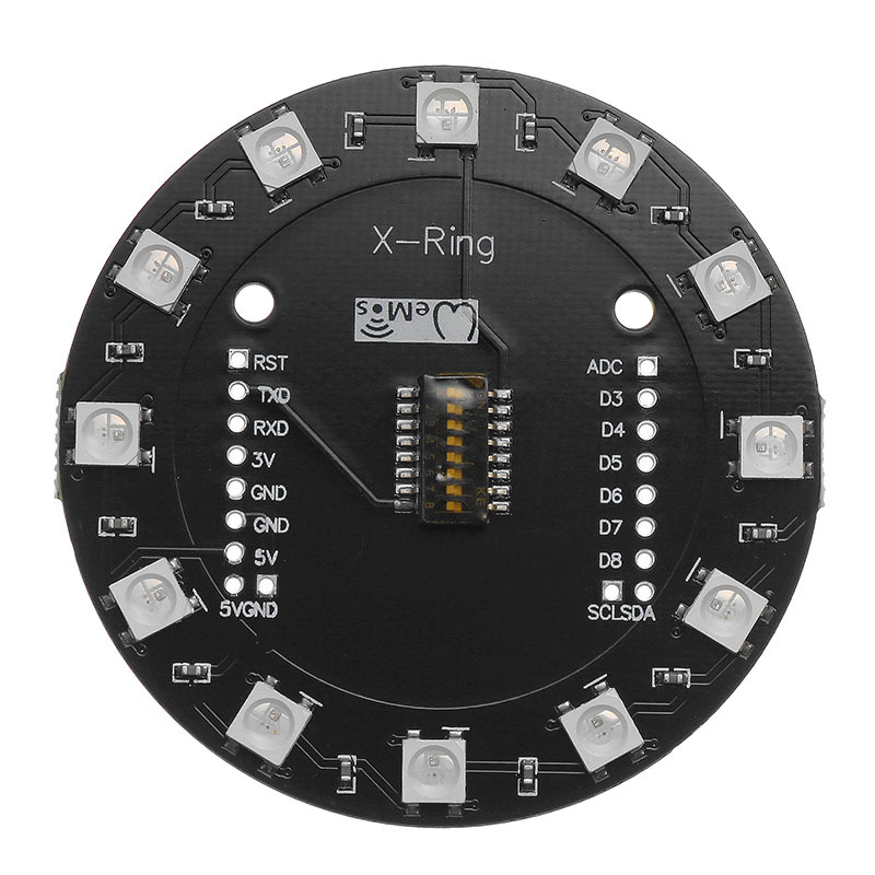 Description:This is a X-Ring RGB WS2812b LED Module For WAVGAT ESP8266 RGB.Document link: Package included:1 x X-Ring RGB WS2812b LED Module12 x Pin