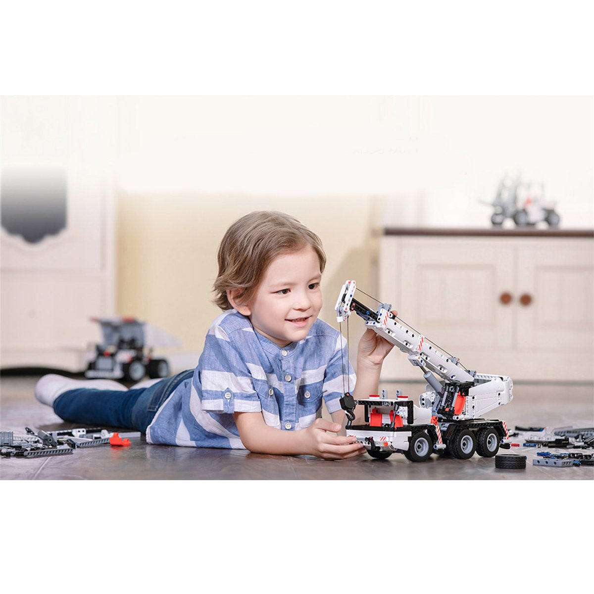 The engineering crane made up of 125 kinds and 720 parts creates the artistic beauty of mechanical life. Simulate the real car restore design, 2 in 1 vivid shape, perfect combination of technology and art, fully display the charm of mechanical structure. The exquisite and delicate parts are perfectly matched to transmit the complex power transmission principle, showing the beauty of machinery everywhere.