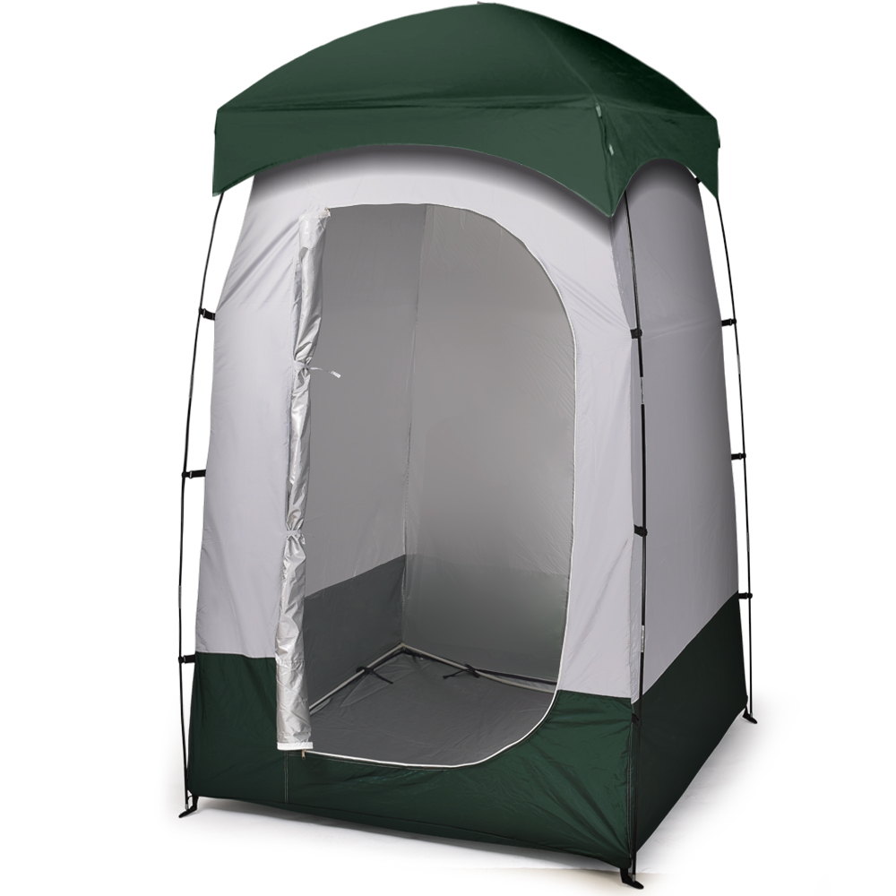 This outdoor essential can be set up and taken down quickly and easily thanks to the innovative, pre-attached instant frame design. The outdoor shower tent/changing shelter is made with durable polyester/steel with silver aluminium-coated walls for complete privacy.