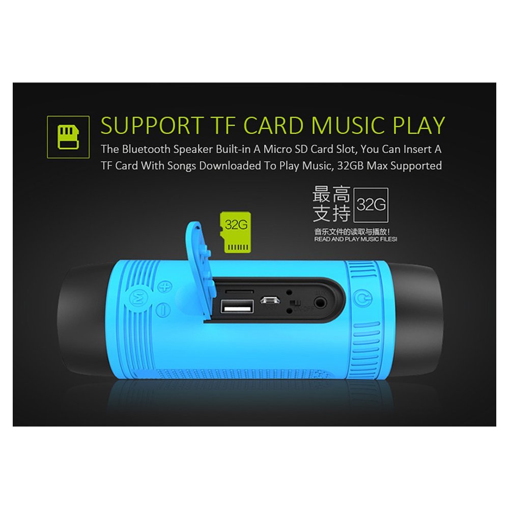 Support TF card music play. The Bluetooth speaker built-in a micro SD card slot, you can insert a TF card with songs downloaded to play music, 32GB max supported.